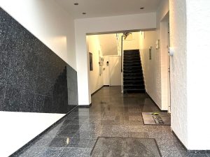 Lejemålet er placeret i opgang 46D, der ligger stille og ugeneret bagerst på matriklen med udsigt ud over ejendommens grønne arealer, og med mulighed for at parkere lige foran opgangen. Lejemålet er beliggende på 2. salen til venstre, og tilgås via et fælles indgangsparti med de øvrige lejere i opgangen.